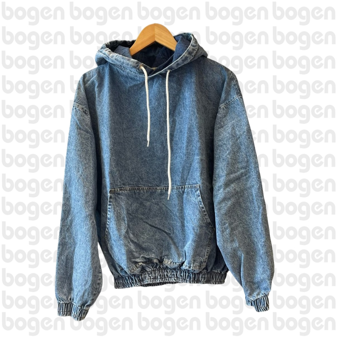 BUZO DE JEANS CON CAPUCHA SIZA 124CM LARGO 61CM MANGA TOTAL DES CUELLO 73CM